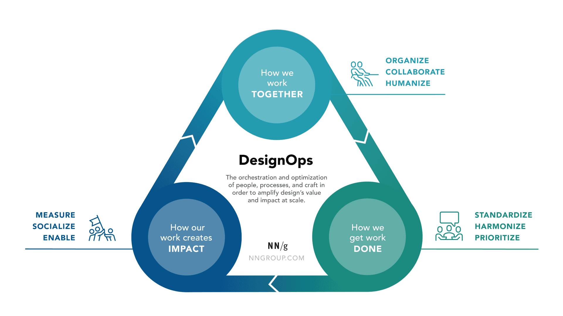 DesignOps, or Design Operations, refers to the operation of design in its simplest form. The main purpose of this methodology is to optimize the design operation, to make it more efficient, and to provide better designs by improving the workflow in accordance with the organizational culture. For this purpose, 3 basic questions are asked continuously; How We Work Together? How We Get Work Done? How Our Work Creates Impact?